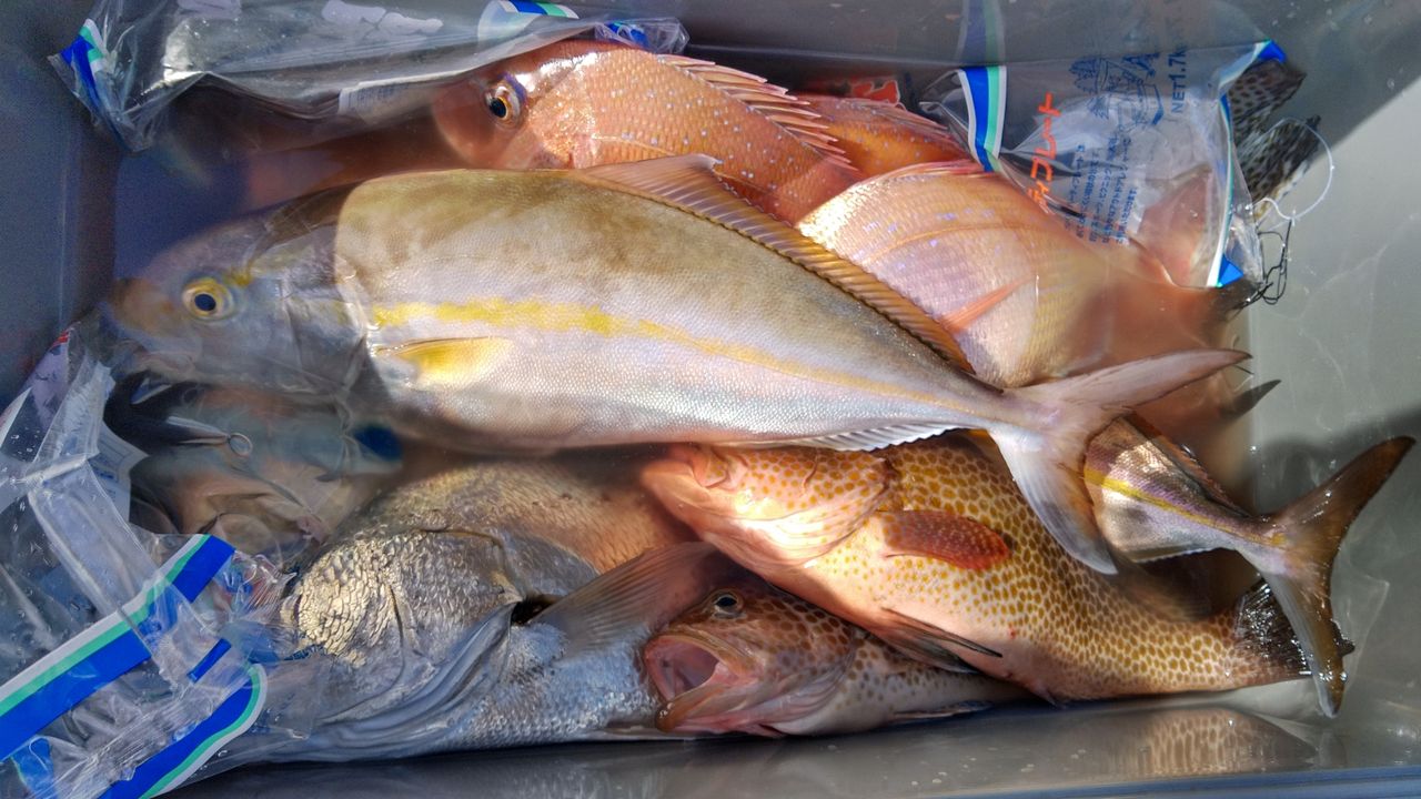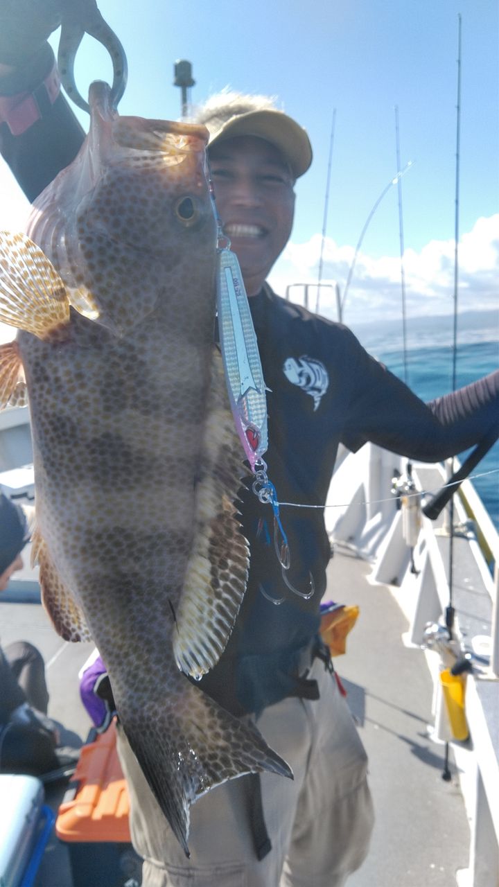 2019年10月25日 10月釣果 今日もウネリ高くて遅めの出港でした。志帆丸さんと合同で香港からのお客様も一緒に釣行でした。潮があまり行かず中々でしたが皆さん楽しまれてました。ご乗船ありがとうございました。